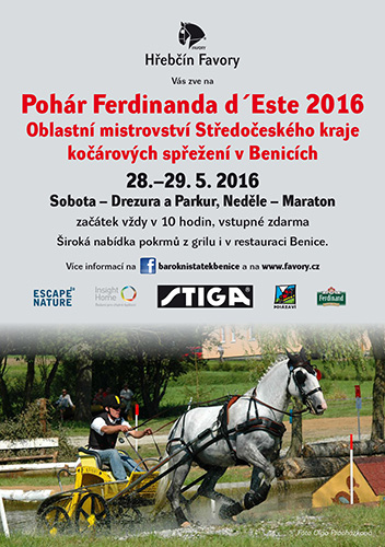 Ve dnech 28. – 29. května se v Benicích uskuteční Pohár Ferdinanda d’Este 2016 – Oblastní mistrovství Středočeského kraje kočárových spřežení. Na programu se začátkem po oba dny v 10 hodin je v sobotu drezura a parkur, v neděli pak maraton.