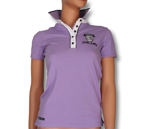 Velmi kvalitní fialové triko s límečkem značky Equiline s motivem Hello Kitty. Triko je dostupné ve velikosti XS. (Pozor jedná se o italské číslování, proto je vhodné zvolit vždy o číslo větší velikost, než běžně nosíte.)