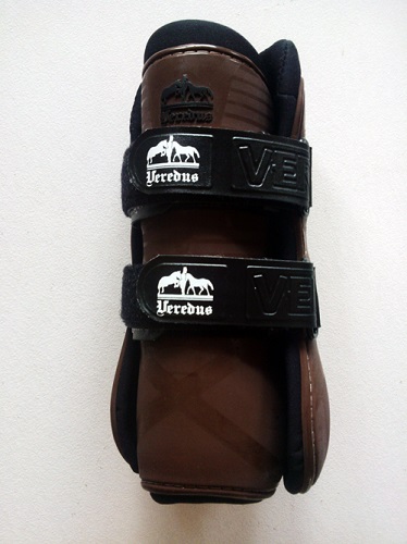 Prvotřídní přední chrániče značky Veredus, typ Pro-Tec ve velikosti pony, v hnědé barvě.