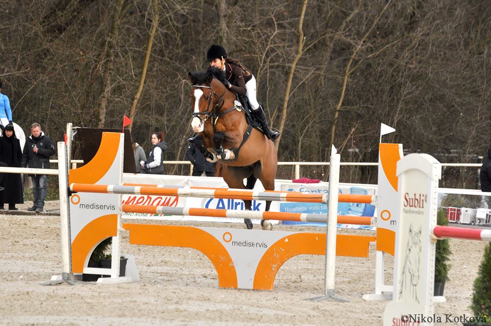 V Poděbradech s mojí první kobylou. V soutěži Z jsem najížděla na druhý skok. Ona zastavila a já spadla do oxeru. Ležela jsem na zemi a chvíli nevnímala, co se děje a měla jsem tmu před očima.
