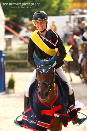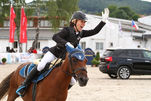 Letošní mistryně ve skocích v kategorii 13-16 let na pony, Vanessa Toušková, jezdí již od mala. Závodit začala v devíti letech a za životního koně považuje svého prvního poníka Ryna. „Naučil mě opravdu hodně,“ říká jezdkyně. Cení si každého dobře zajetého parkuru, ale nejvíce 1. místa na letošním MČR pony.