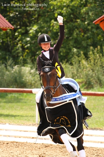 Desetiletého valacha Aha si jistě pamatujete, jelikož se svou jezdkyní Terezou Markuskovou nedávno získali zlato na drezurním MČR. Věděli jste, že spolu pracují pouze měsíc?! Dříve skákal a s Terezou se teprve sehrávají. „Je to miláček stáje, překvapuje nás každý den,“ říká jeho jezdkyně.