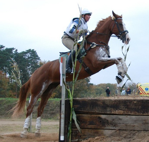 Loni na posledních závodech doma… Po drezuře jsme byli na krásném 3. místě, cross jsme šli čistě, na parkuru také až do posledního, osudného oxeru s bazénkem, kdy už jsem se viděla v cíli, předklonila se a Zonďa se na mě vyprd… 🙂