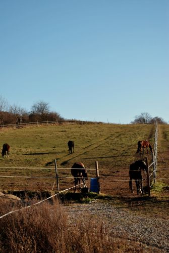 Naše stáje čítají 18 vnitřních boxů s tím, že se hříbátka dávají po dvou, aby vždy ten zkušenější učil toho menšího. Dále areál skýtá 16 hektarů pastvin, kde se naši svěřenci časem přiřadí k dospělým koním, aby si vštípili vzorce koňského chování.