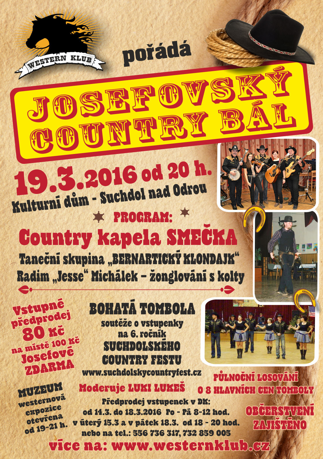 Kulturní dům – Suchdol nad Odrou. Hraje Country kapela Smečka. Vstupné v předprodeji 80 Kč, na místě 100 Kč. Více informací v pozvánce.