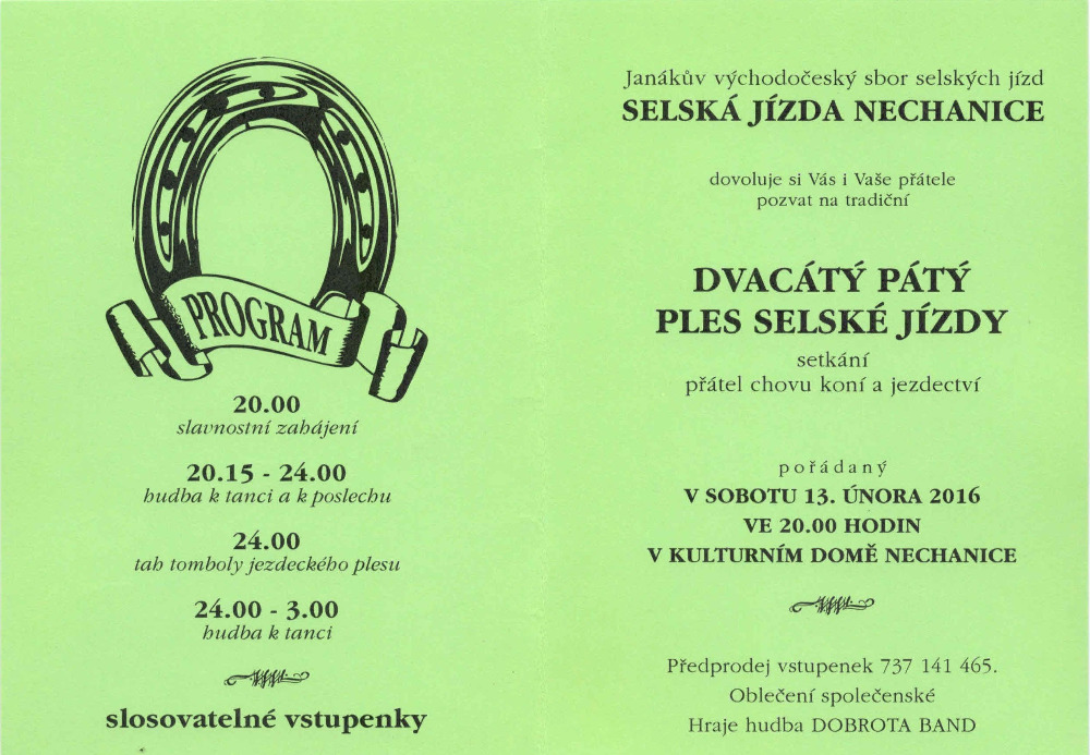Setkání přátell chovu koní a jezdectví v kulturním domě Nechanice. Hraje hudba Dobrota Band. Předprodej vstupenek 737 141 465. Více v pozvánce.