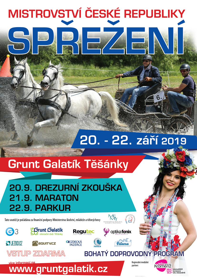 O nadcházejícím víkendu se sjedou jezdci spřežení do Těšánek – přesněji na Grunt Galatík, kde budou bojovat o mistrovské medaile a o tituly mistrů České republiky v jednospřeží, ve dvojspřeží i ve čtyřspřeží a ve dvojspřeží pony. Předběžně je nahlášeno 48 spřežení.