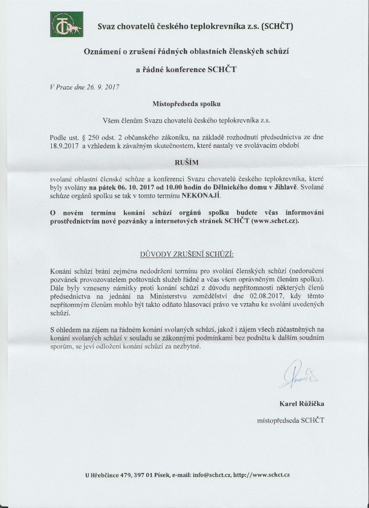 7. 10. www.schct.cz Situace po zrušení schůzí SCHČT 2017