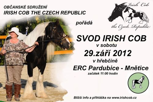 Občanské sdružení Irish Cob the Czech Republic pořádá v sobotu 29. září v areálu Equinního reprodukčního centra v Mněticích u Pardubic svod irských kobů, který začíná v 11 hodin. Bližší informace a přihlášky na www.irishcob.cz.