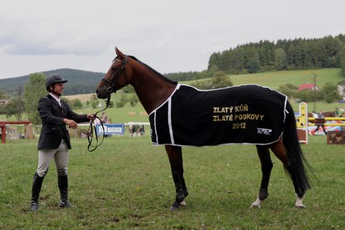 Pippa Fun s dekou pro Zlatého koně Zlaté podkovy 2012 a svým stálým jezdcem Robertem Pokorným. Foto Lucie Hladová