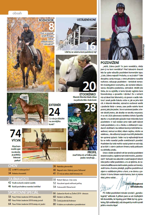 Poslední středa v měsíci je tu – a s ní nové Jezdectví!! Ale už máte přečtené a zakoupené to březnové, s nímž přicválali Janek Kroupa, Madonna a Kaštan? Vřele doporučujeme, protože kde jinde se dozvíte, jak odpočívají investigativní novináři, co je na vytrvalosti krásné a proč Janek jezdí s fonendoskopem?