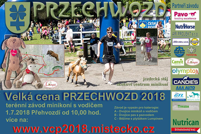Dne 1.7.2018 se v Přehvozdí u Českého Brodu uskuteční již 4. ročník Velké ceny PRZECHWOZD – terénní závod minikoní s vodičem. Závod o délce 4km se beží krásnými lesy Pošembeří a kdo nemůže běžet s koníkem, je závod otevřen i pro pejskaře a kdo nemá vůbec žádné zvířátko tak je možné běžet s plyšákem Lumpinem, kterého startující obdrží při startu na trať a pak si nového kamaráda odveze domů. Je vhodné pro děti s rodinami…