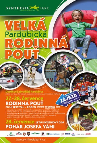 Velká pardubická rodinná pouť, společně s Prorodeo Tour 2013, se v Synthesia Parku koná v sobotu a v neděli 27. a 28. července po celý den. V neděli 28. července od 13 hodin pak postupně odstartuje celkem devět dostihů včetně Dostihového poháru Josefa Váni.