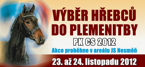 Výběr hřebců a zkoušky vloh hřebců ročníku 2010 libovolného plemene teplokrevných koní pro plemenitbu v rámci PK CS proběhne v areálu JS Nesměň ve dnech 23.-24. listopadu. Vybraným dvouletým hřebcům může být udělena základní licence k připouštění v rámci PK CS pro rok 2013 v souladu s platným ŘPK a Šlechtitelským programem PK CS.