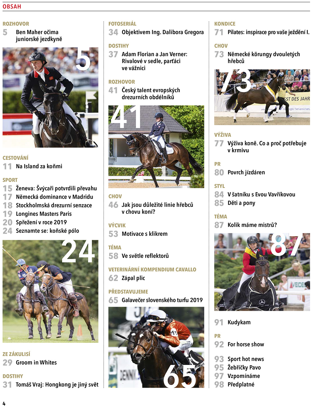 V pondělí 30. prosince přichází na stánky lednové číslo, ve kterém si můžete přečíst rozhovor s vítězem GC Super Grand Prix Benem Maherem či s talentovanou drezurní jezdkyní Evou Vavříkovou, dozvíte se co se odehrálo ve spřežení v sezóně 2019, jak se hraje pólo anebo se s námi přenesete do jiného světa dostihů v Hong Kongu. A nejen to, kromě spousty dalších zajímavých článků na vás čeká krásný plakát s roztomilým poníkem Guliverem