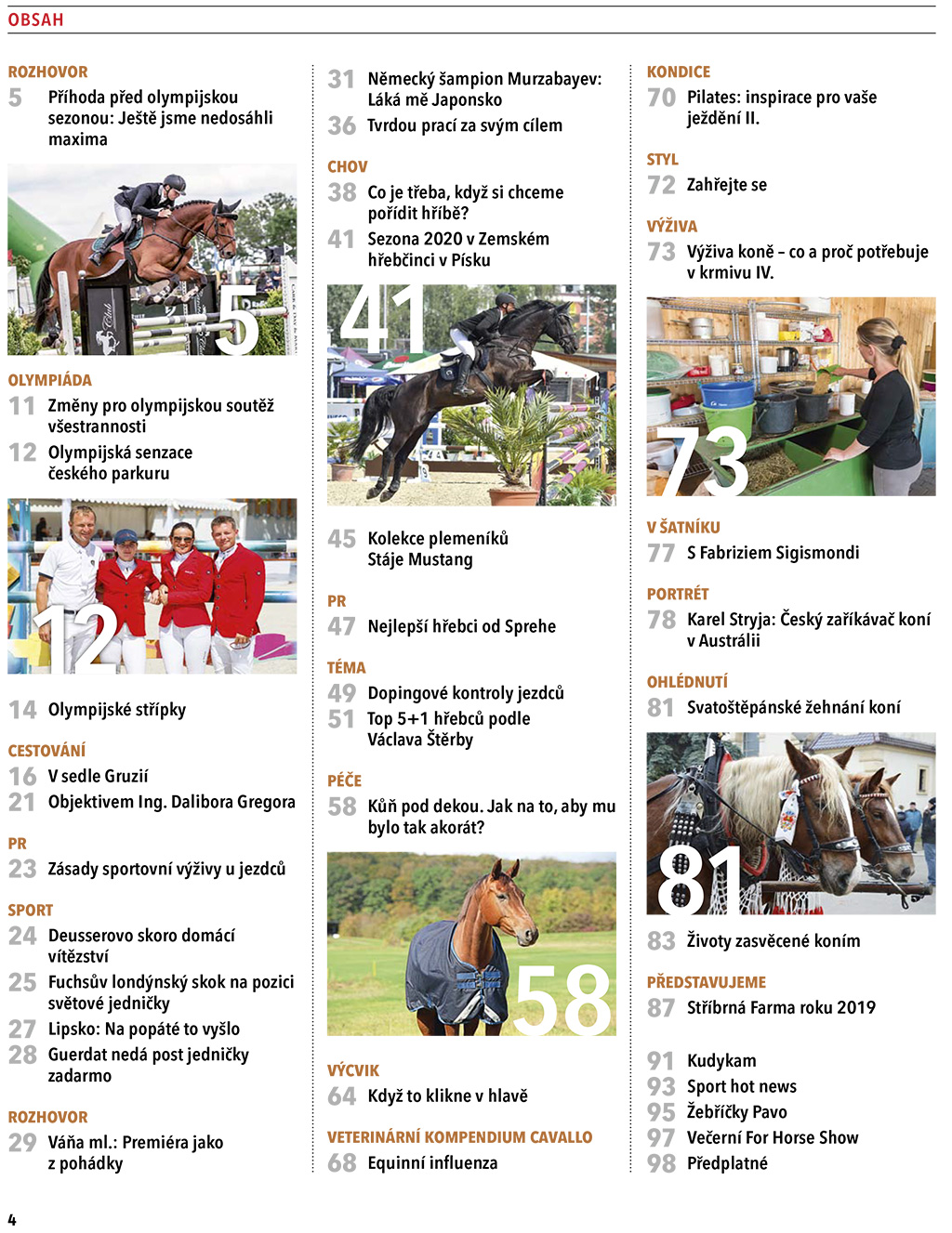 Únorové číslo Jezdectví je tady a s ním opět spousta zajímavých článků. Nechybí rozhovor s Miloslavem Příhodou, k tomu se váží informace k aktuálnímu tématu OH v Tokiu, ze sportu samozřejmě přinášíme reportáže z těch největších akcí. Nepřehlédněte zimní téma péče o koně, dozvíte se, co se děje pod dekou vašeho koně. A odpoutat se od běžného shonu můžete u cestopisu Výlet v sedle v Gruzii.