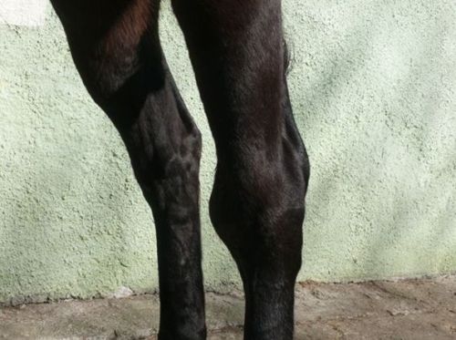 Valach Petit Ben, angl. plnokrevník, 11 let s traumatickým zhmožděním měkkých struktur hlezenního kloubu.