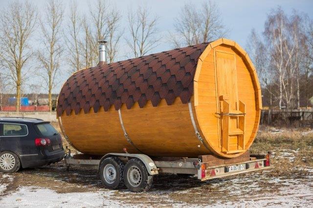 Mobilní sauna nevyžaduje další zázemí. Lze ji přemisťovat pomocí manipulátoru a instalovat ji předem připravenou platformu nebo podklad.