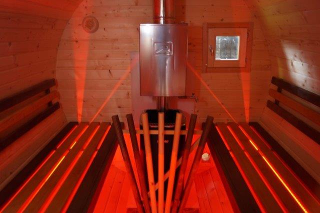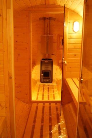 Účinný tvar sudové sauny, bednářská technologie a vysoká kapacita pece HARVIA umožní prohřát parní lázeň na 120°C i v té nejchladnější zimě.
