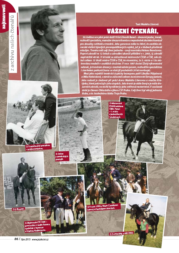 Drezurní jezdec, trenér, rozhodčí specialista, manažer drezurní komise a neposledně zkušební komisař pro zkoušky cvičitelů a trenérů, Zdeněk Beneš nás v neděli 27. dubna navždy opustil.
