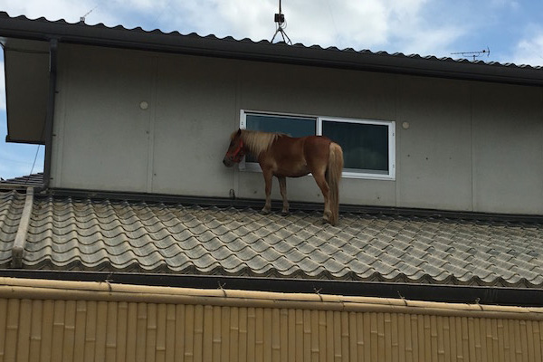 Klisna Leaf se ztratila v Japonsku poté, co musela být její stáj v Life Town Mabi evakuována 6. července kvůli povodním. Pracovníci stáje si mysleli, že devítiletá klisna využívaná k terapiím se během záplav utopila. Avšak v pondělí 10. července ji nalezli několik kilometrů od stáje na střeše jednoho soukromého domu.